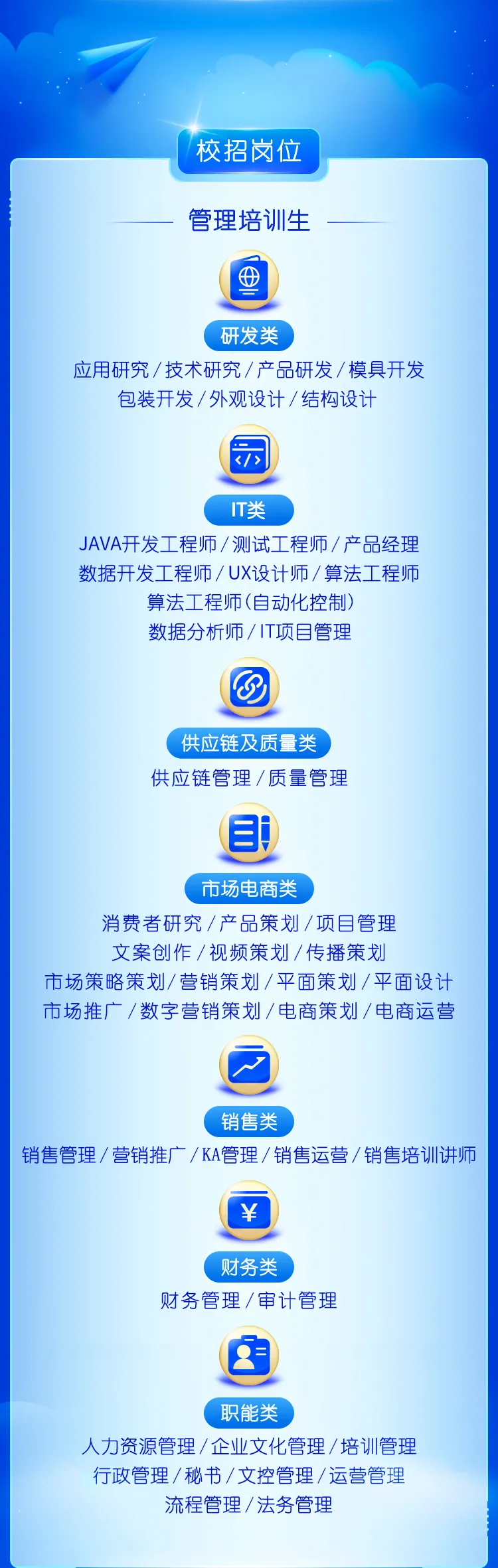 [太阳]七大类岗位等你pick:研发类、IT类、供应链及质量类、市场电商类、销售类、财务类、职能类