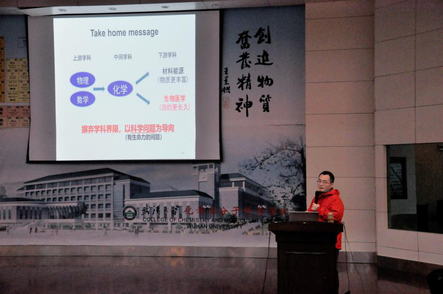 以《我不是药神》为引,以生物医药发展为切入点,以“学科交叉”为内核主题,翁小成教授为同学们作了题为《学科交叉的魅力——化学与生物医学》的报告,深入浅出地讲解了化学与生命科学融合发展的交叉发展史,阐明了化学与生物学交叉带来了新的科研增长点,强调技术的成熟和应用需要各个学科的深入合作,科学发展需要摒弃学科界限,以问题为导向,创造更多的社会价值。