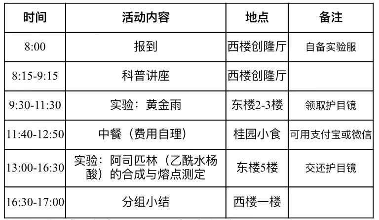 训练营不仅用讲座为中学生们打开了“仰望星空”的窗口,也充分贯彻“理论联系实践”的精神,精心设计了实验体验模块。为了在有限的时间让同学们获得最大的收获,实验中心的老师门选择了极具代表性的两个实验——代表无机化学的“黄金雨(碘化铅的沉淀溶解平衡)实验”与代表有机化学的“阿司匹林(乙酰水杨酸)的合成实验”。为了保证实验安全、提高实验质量,色情直播还按照4:1的比例为中学生们配给了科普辅导员,由优秀的本科生担任,指导实验操作并讲解实验背后的原理。