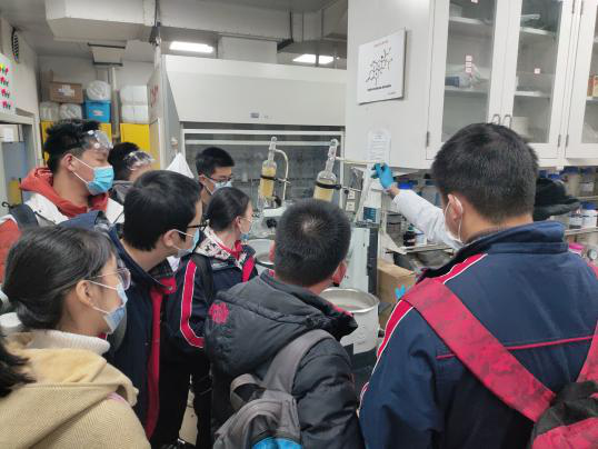 众多优秀教授的课题组进行参观。实验室的优秀学长姐不仅为同学们介绍了课题组的主要研究方向与课题,而且在保证安全的前提下为大家演示了部分操作。这样生动有趣、形式新颖的讲解让同学们对化学、对科研有了更深的了解,激发了大家的学习热情。