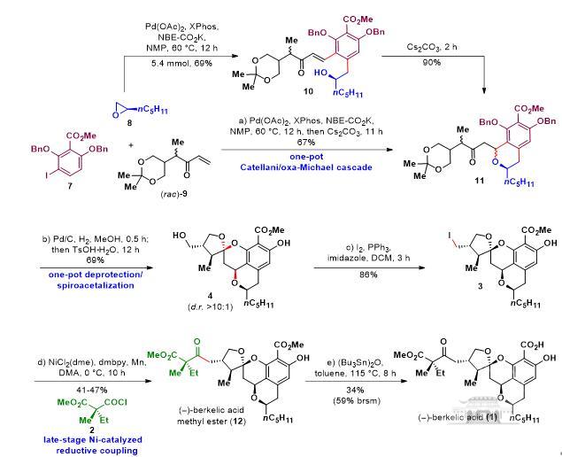 图2. (–)-Berkelicacid的全合成