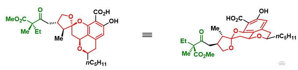 (–)-Berkelicacid是一种具有独特的四环异色满螺缩酮结构的天然产物,由Stierle教授团队于2006年从位于美国蒙大拿州的伯克利露天矿湖里的青霉菌中首次分离得到。据报道,该化合物能有效抑制基质金属蛋白酶(MMP-3)以及半胱氨酸蛋白酶-1的生理活性,并且对卵巢癌细胞株(OVCAR-3)也表现出较好的药理活性 (GI50 = 91 nm)。由于(–)-berkelicacid新颖的结构特点、较好的生物活性,仅存在于极端的环境中,且含量少、分离困难,因而受到有机合成化学家的广泛关注(图1)。