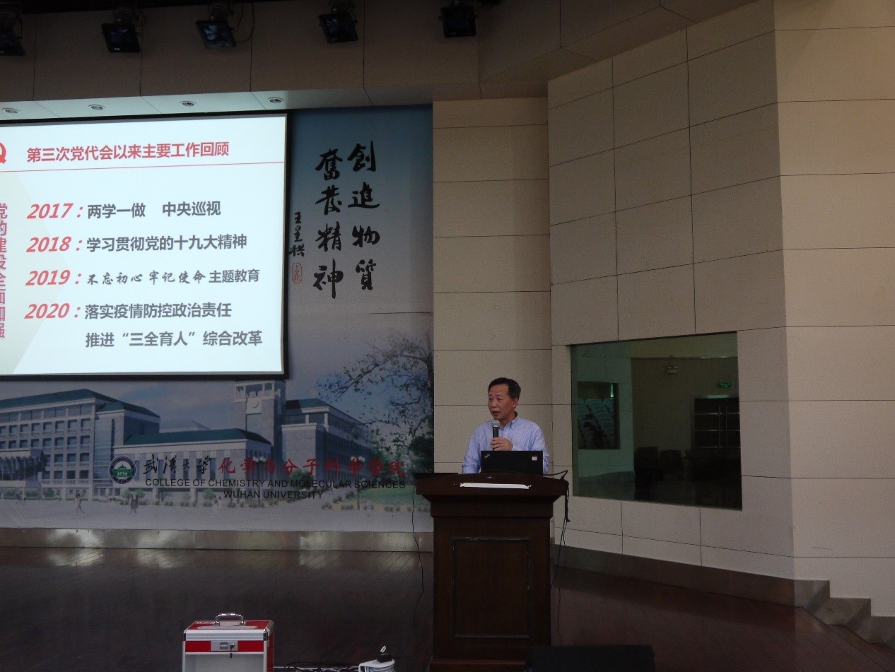 他号召全院师生党员要紧密团结在以习近平同志为核心的党中央周围,充分发挥共产党员的政治核心、战斗堡垒和先锋模范作用,带领全院师生,同心协力、锐意进取,不忘初心,砥砺前行,团结带领全院师生员工不断开创色情直播发展的新局面,为早日建成特色鲜明,世界一流的化学学科而努力奋斗,以饱满的精神和优异的成绩迎接建党100周年!