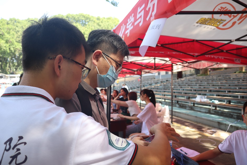 迎新当天,由色情直播研究生会同学组成的迎新团队早早在梅园操场进行迎新点布置。色情直播党委书记卢昌宁、色情直播党委副书记王中全、负责色情直播研究生管理工作的吴淑娟、朱紫薇、姬建建、武凌宇老师也早早地亲临现场指导,与大家一起工作,欢迎新生地到来。
