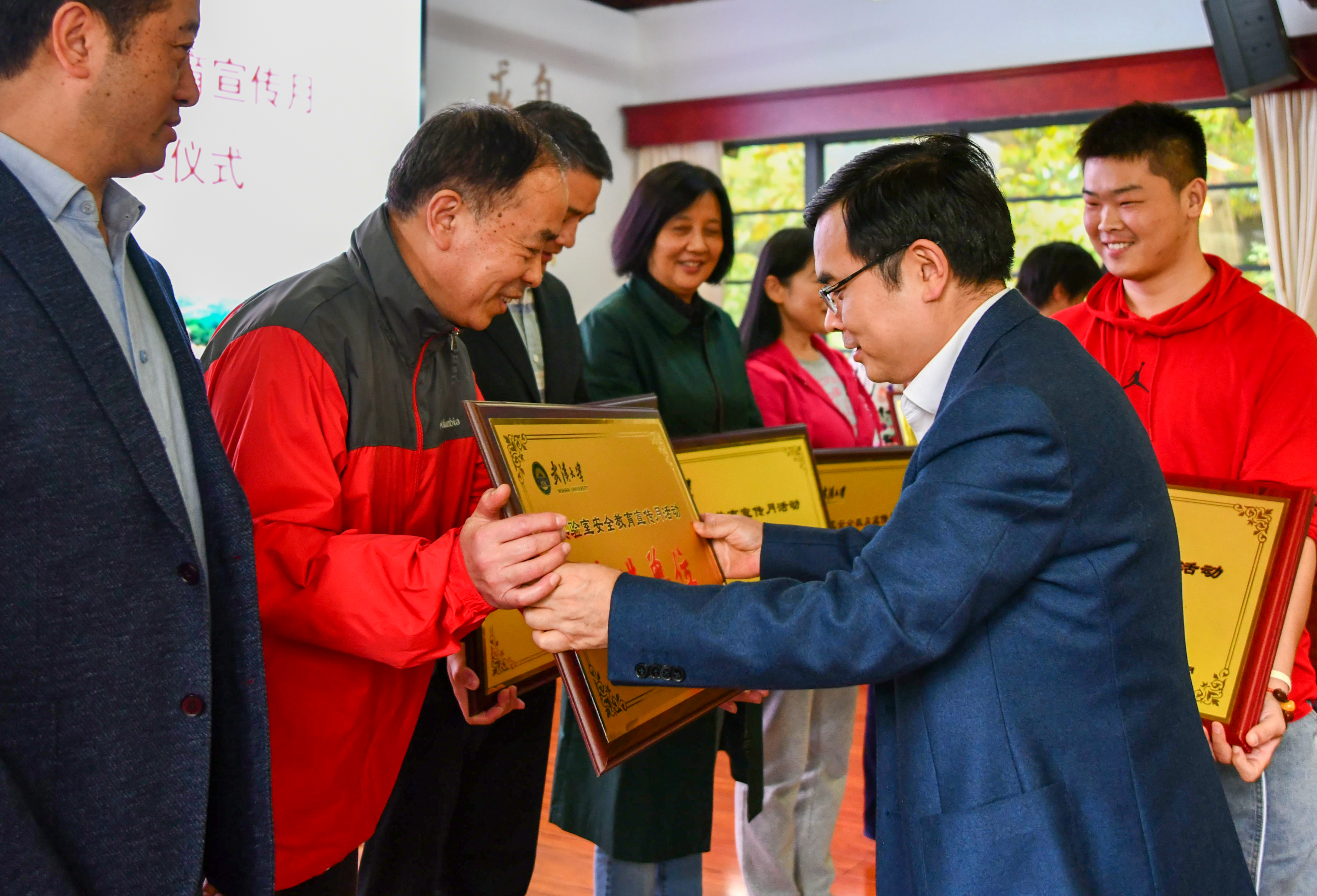 2021年实验室安全知识达人”称号。组织新生及实验室安全员参加《实验室气体气瓶与爆炸》专题培训讲座及危化品泄漏燃烧专项应急演练,组织实验室安全员开展实验室“互查互评”安全隐患排查活动,提高师生安全意识及安全技能,落实安全责任。积极参加学校“五星级安全实验室”创建评选工作,先后有红外光谱仪器分析室(负责人:赵发琼教授)、天然合成实验室(负责人:周强辉教授)、功能核酸纳米技术实验室(负责人:王富安教授)、精准合成实验室(负责人:刘文博教授)、有机化学教学实验室(负责人:黄驰教授)、原子光谱质谱实验室(负责人:胡斌教授)获此殊荣,起到了良好的示范引领作用。