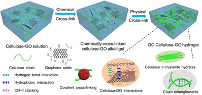 蔡杰课题组提出一种多重模量组分策略制备高强韧、高含水量的双交联纤维素-氧化石墨烯(DCCG)复合水凝胶。化学交联的纤维素-GO纳米片区域形成非共价相互作用变得更加具有弹性和柔韧性,半刚性的纤维素链通过自组装和重结晶形成纤维素II结晶水合物,并与刚性的GO纳米片作为物理交联点在形变过程中吸收和耗散能量,通过协同作用同时提高DCCG复合水凝胶的强度和韧性。此外,GO纳米片的光热转化性能导致复合水凝胶具有优异的光热抗菌性能。该研究有望为从天然高分子出发构筑高性能和多功能复合材料提供新思路。