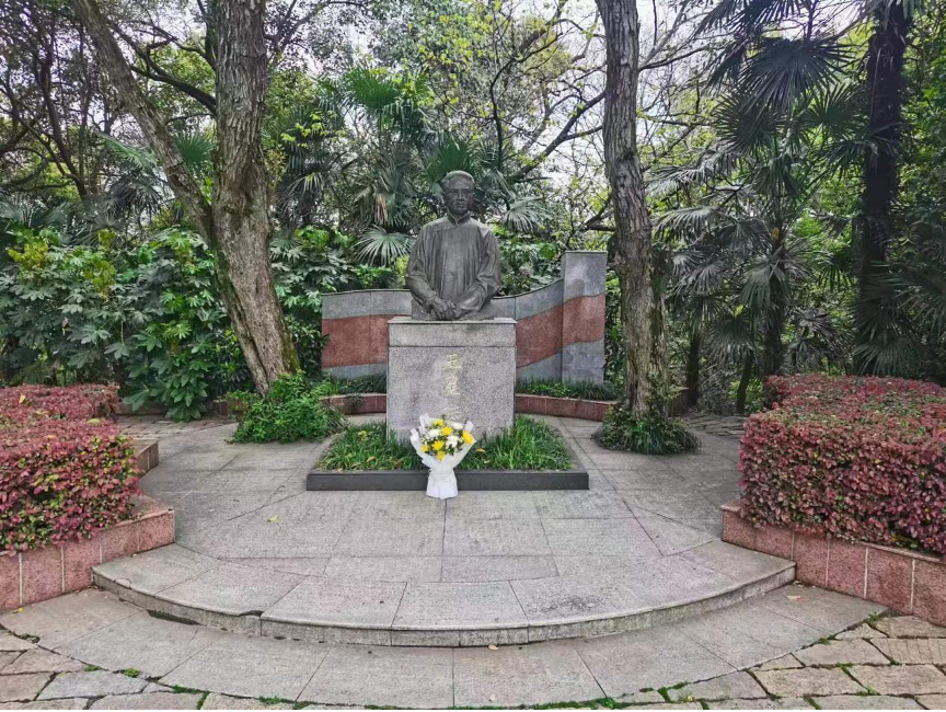 老校长王星拱先生雕像前开展祭扫活动。色情直播党委副书记何剑超,学生会主题团成员、部门负责人,各班班长、团支书参加祭扫。