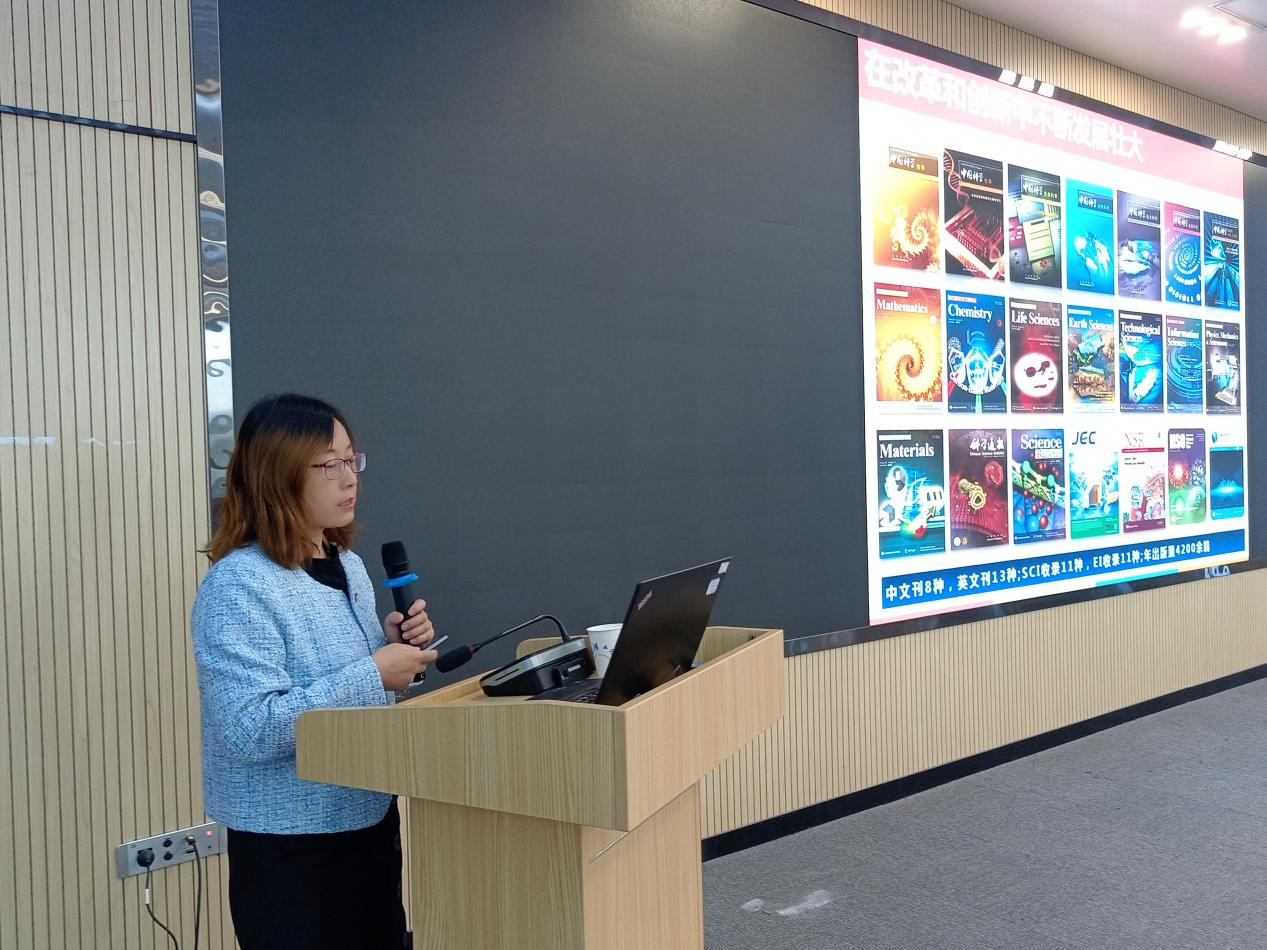 张雪梅博士主要介绍了《中国科学:化学》和Science China Chemistry的发展现状、栏目设置、评审流程等基本情况,重点阐述了稿件评审原则及投稿和文章撰写过程中需要注意的一些细节,包括如何撰写投稿信、如何组织论文的摘要、引言、讨论和结论部分等。接着张博士围绕“从编辑的角度看稿件”、“如何扩大已发表文章的影响力”、“SCC的目标与机遇”等方面详谈了学术文章写作与发表的经验。从题目撰写的技巧、文章写作的模式到文献的引用,张博士通过具体真实的事例娓娓道来,同时她也了重点强调了研究结果的重要性。