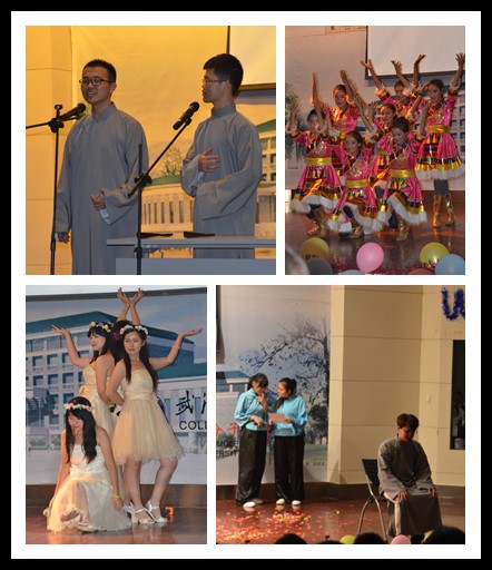 歌舞《樱花草》的四位女同学活波俏皮载歌载舞,藏族舞蹈《青春飞扬》充满了民族气息;话剧《有雷无雨》的演员表演极其投入,富有感染力。最令人惊喜的当属相声表演《我的大学》了,褚君和孙立两位同学的相声表演甚是专业声情并茂全场笑声不断。