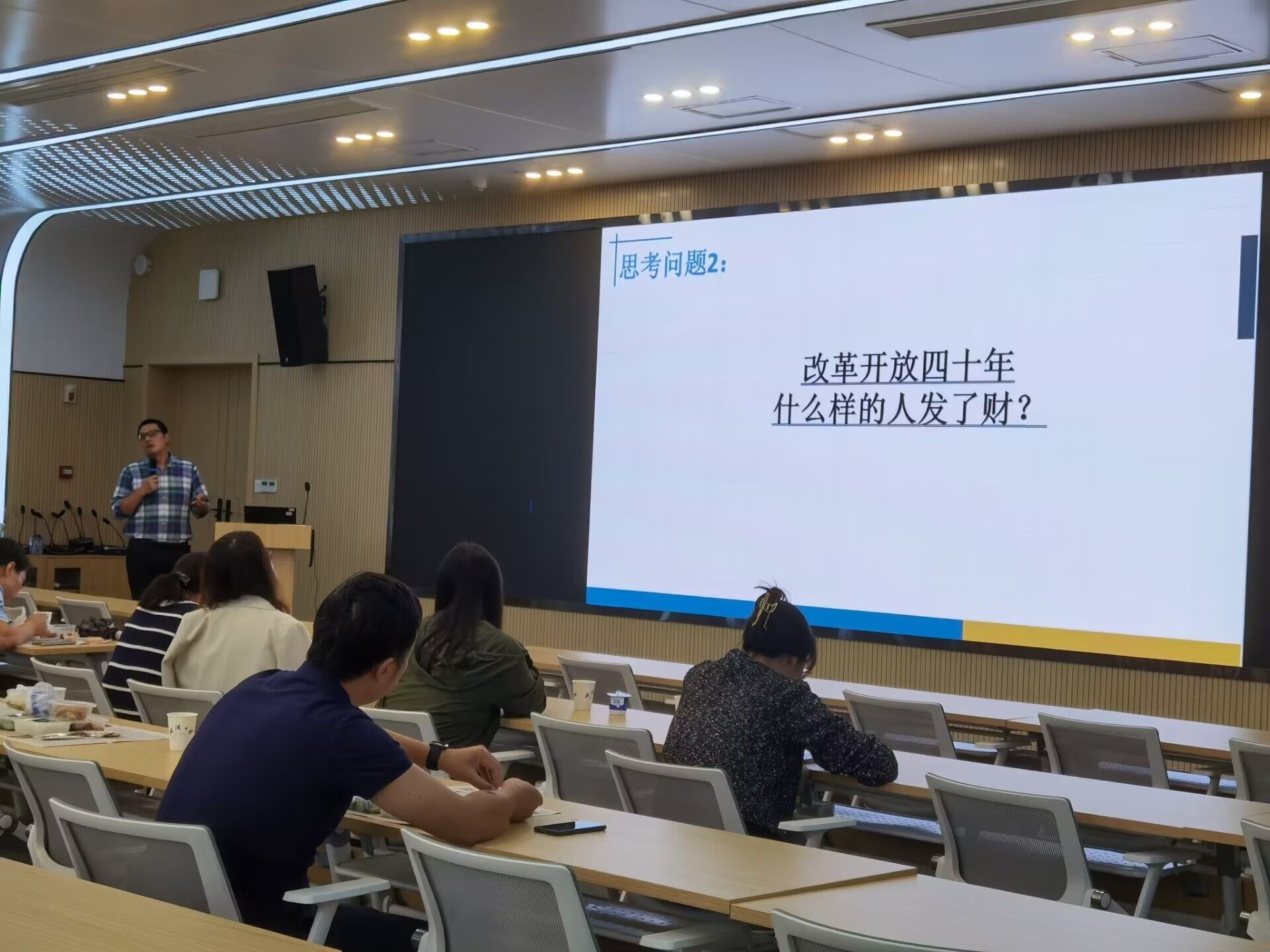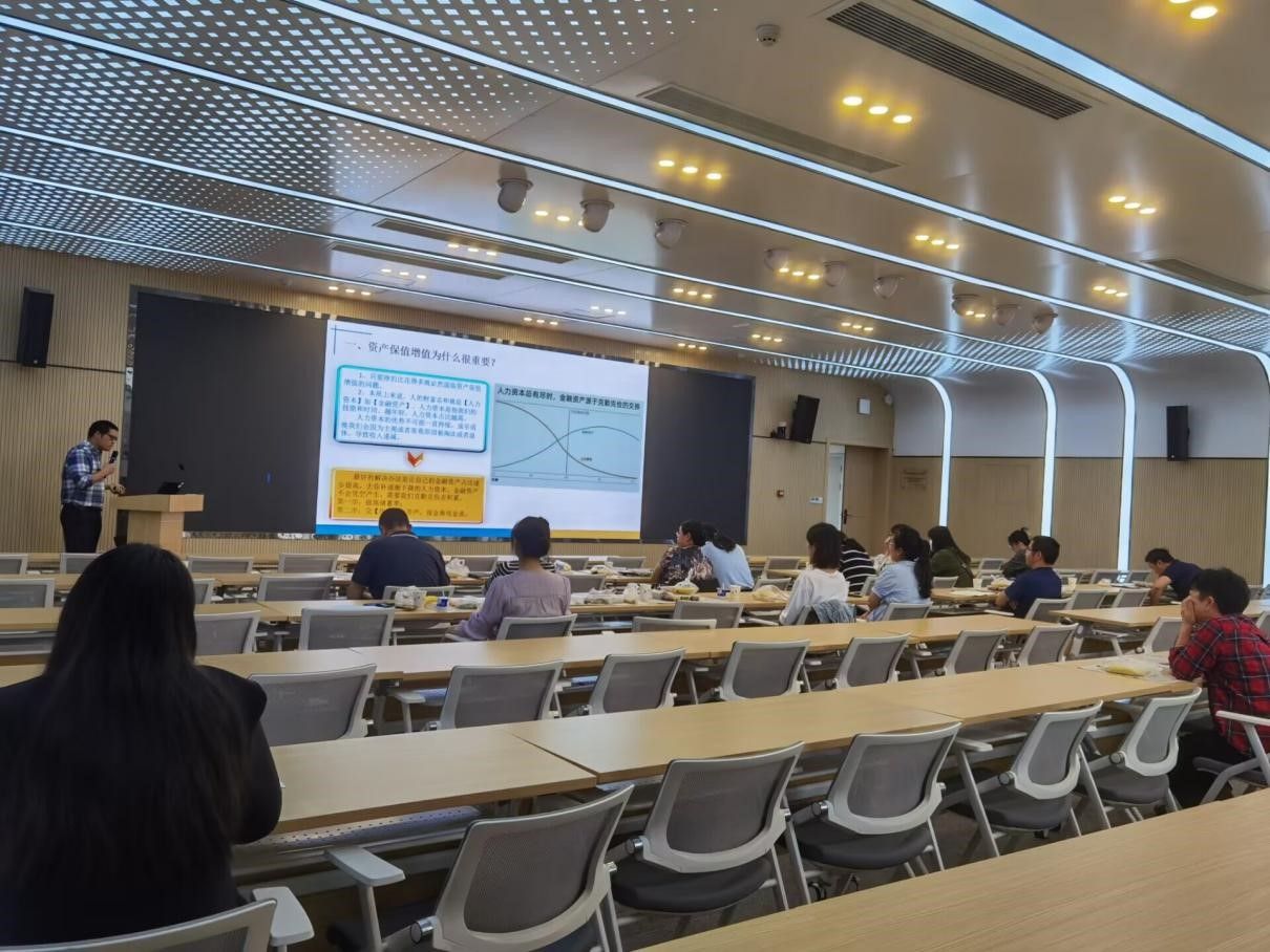 尽管是在午休时间,各位老师也丝毫不减热情,仍然参与到讲座中、认真倾听。张登经理在开头便连续提出了两个思考问题,与老师们进行互动,了解大家的基本情况后,在教授相关领域的专业知识的中间,穿插讲述了自己的亲身经历和感受,提出了让资产保值增值的方法和正确的投资概念,便于老师们的理解,在投资方面更深刻的提出,要选择长期、普适、具有可重复性的方法,在安全边际和自己的能力圈内“艺高人胆大”。