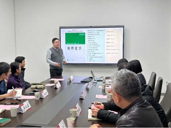 教材建设中心主任方祥玉、副院长周金平、北京理工大学出版社高等教育分社副社长蒋彭、湖北分社顾笑梅、万利娜以及公共物理化学课程组教师参会。会议由蒋风雷副院长主持。
