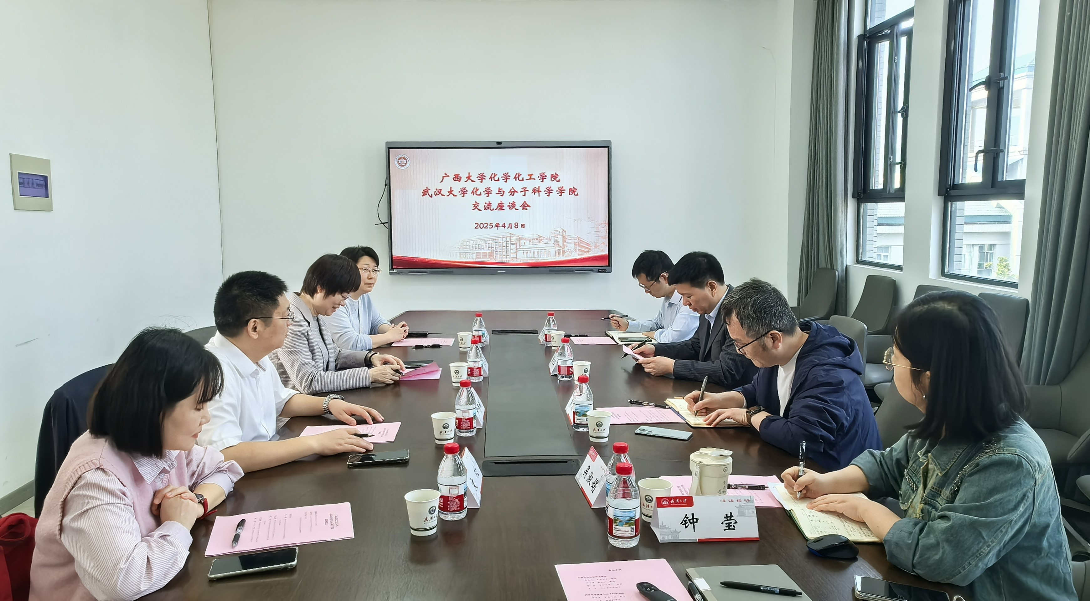 翁小成介绍武大化色情直播学科布局、科研平台、人才培养等情况。尹诗斌围绕广西大学化色情直播区位优势,介绍资源化工等特色研究方向及服务广西工业发展的产学研成果。交流环节,双方就党建引领、学科建设、人才队伍建设等三大议题深入探讨。