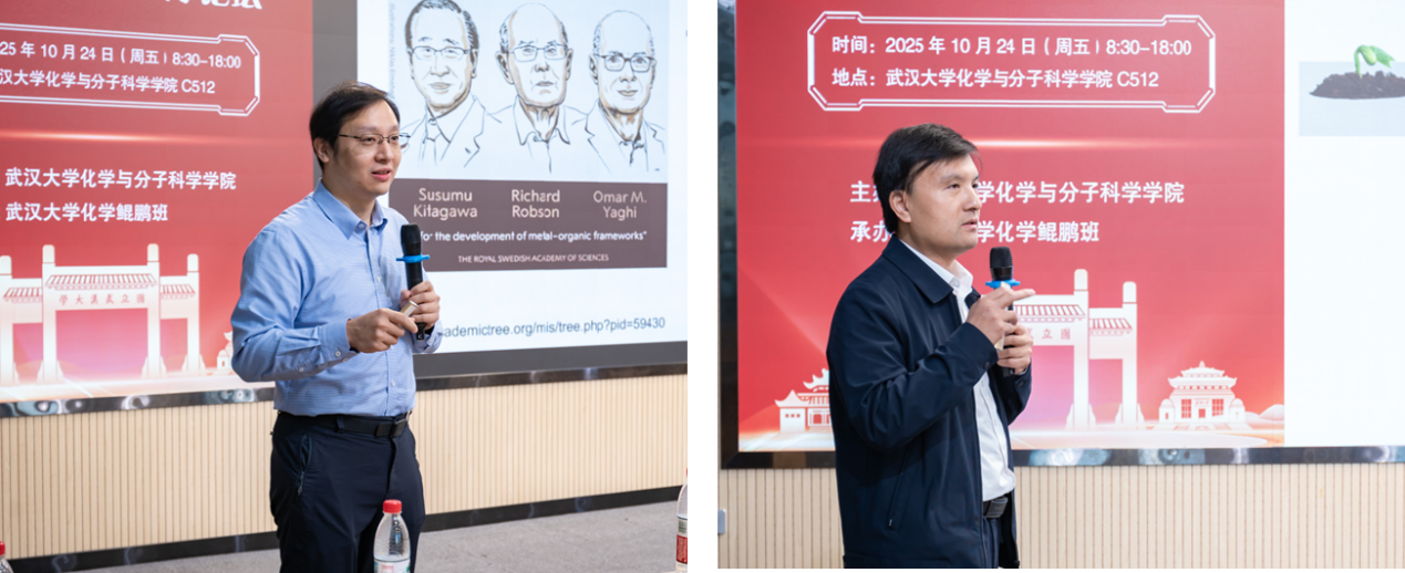在特邀报告环节,邓鹤翔教授从MOF最初的发现与发展讲起,结合自身求学与工作经历,作了题为“MOF——从实验室到诺贝尔奖”的精彩报告,充分体现了创新思维与科研方法的重要作用。王峰研究员作了题为“生物质催化精炼”的精彩报告,他围绕当前经济社会发展所面临的挑战,系统讲解了木质素等生物质的研究意义与最新进展,体现了社会需求在科学发展中所起的导向作用。黄卫华教授作了题为“纳米电化学单细胞实时探测”的精彩报告,他分享了团队在利用电化学手段检测细胞实时生理活动方面的最新成果,引发了与会者的浓厚兴趣。
