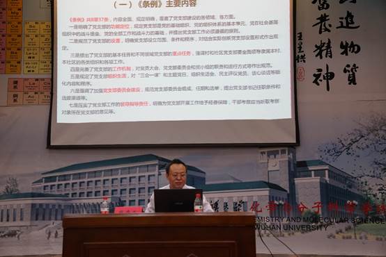 党委组织部副部长王三礼作了题为《党支部书记的工作职责与方法》的主题报告,王部长结合《中国共产党支部工作条例(试行)》等重点阐述了高校党支部的基本职责和八项任务,强调要准确理解政策背后的内涵和意义。
