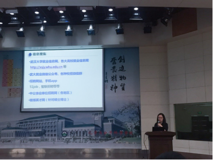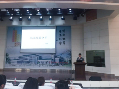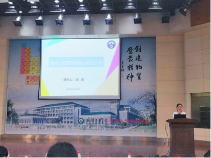 2016级硕士喻丽莎则从宣讲会、简历、笔试、面试等方面向同学们分享了自己的经验。她告诉大家一定要先确定自己的目标,根据目标做好相应准备。2016级博士徐娟,她即将去一家高校就业,她从信息收集、简历制作、高校面试等方面交流了自己在高校求职方面的经验,给有意加入高校工作的同学一个借鉴。