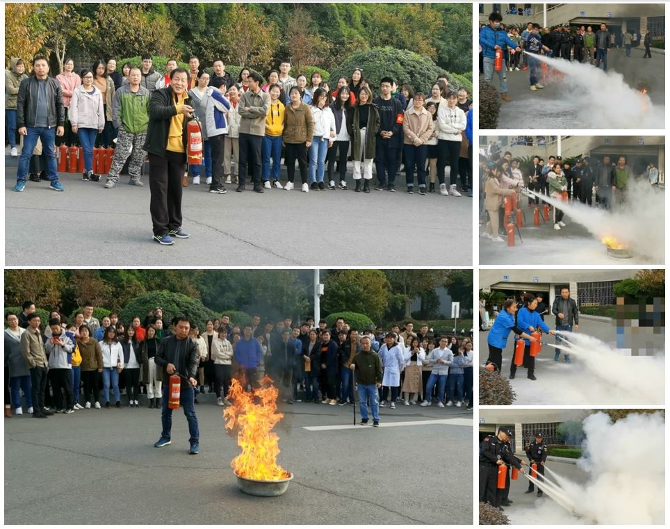 随后,学校保卫部副部长魏友团在楼外集结点给师生讲解消防安全知识及灭火器的使用方法,并指导师生使用灭火器。部分师生及所有物业人员现场参与了灭火实操演练。