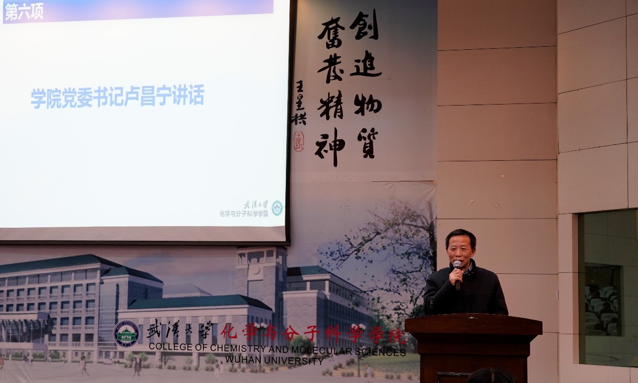 进入表彰颁奖环节,卢昌宁书记首先为荣获国家奖学金的优秀学生颁奖。2018级周高昂同学作为国奖获得者代表发言,他通过介绍自己的学习心得和工作经验,给予学弟学妹深刻启发。
