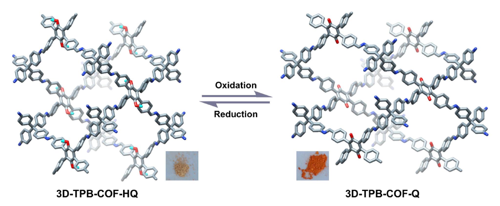 前期研究中,汪成课题组提出了“4+4”连接方式来构筑三维COFs的拓扑设计新策略(J. Am. Chem. Soc. 2016, 138, 3302;Acc. Chem. Res. 2020, doi: 10.1021/acs.accounts.0c00357)。本工作中,他们基于该策略,构筑了首例具有氧化还原响应性的三维COF(3D-TPB-COF-HQ)。通过外加氧化剂和还原剂,框架中氢醌和醌将发生可逆转换,伴随着单晶到单晶的变化过程。同时,调控前后其孔环境发生较大变化,进而导致CO2/N2选择性吸附能力变化。值得一提的是,该过程具有很好的可逆性和循环性,可至少重复进行三次。此研究充分说明,三维COFs可为固态下有机分子开关的高效调控提供了一个极佳的研究平台,同时可构筑新型响应性多孔材料。