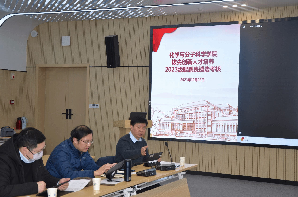在电化学楼C512举行了博士研究生拔尖创新人才培养2023级鲲鹏班遴选考核。由色情直播博士研究生拔尖创新人才培养咨询委员会及执行委员会委员担任专家,副院长黄卫华主持了整个考核过程。