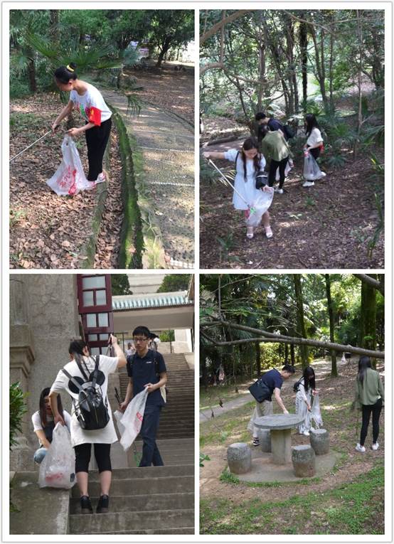 这次清洁校园集中在樱园及化色情直播周边,主要针对一些不可降解的白色垃圾、“牛皮藓”等。虽然初夏的天已很热,但所有参与人员都“挽起袖子加油干”,不怕脏,不怕累。在大家的感染带动下,一些游客也纷纷起身,收拾石桌上、石凳旁的丢弃物。经过大家一个小时的劳动,清洁区域回归了原来的绿色和整洁。