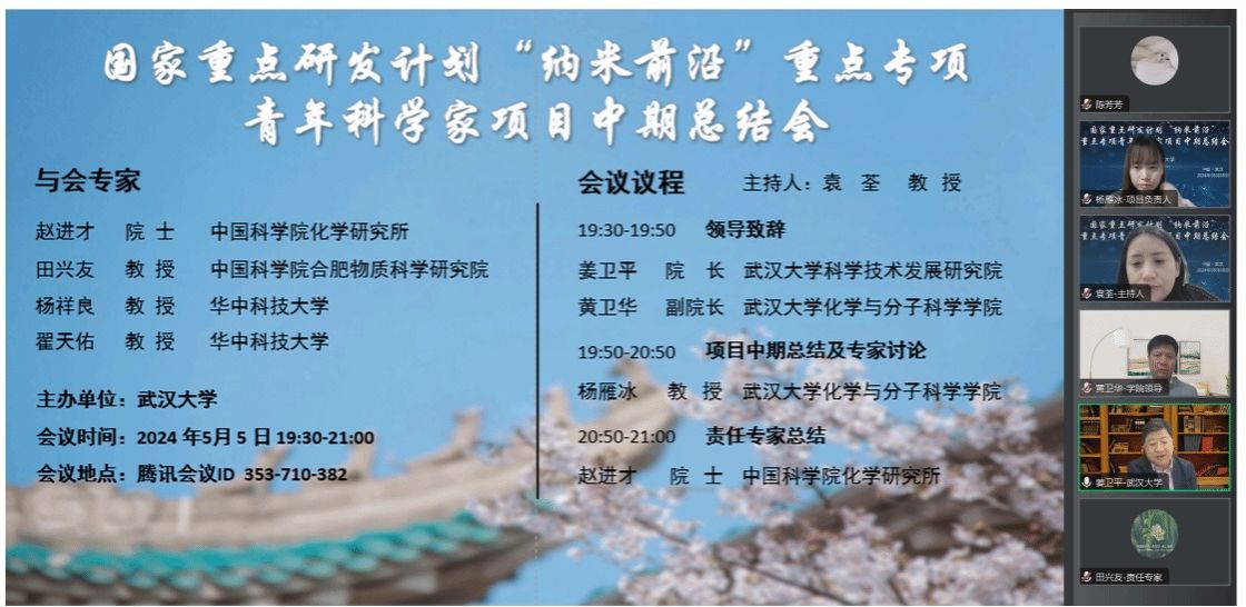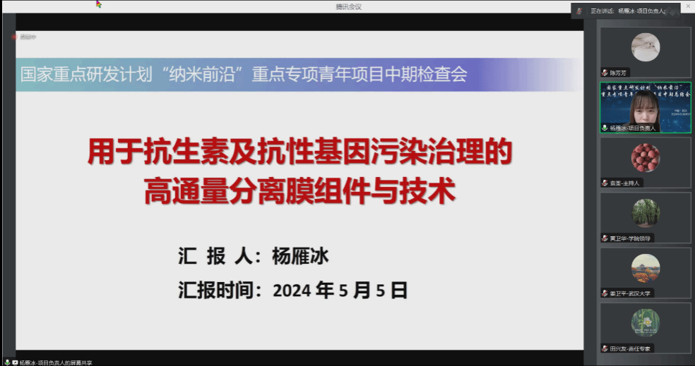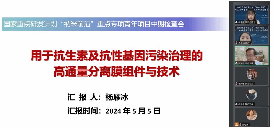 牵头的国家重点研发计划“纳米前沿”重点专项青年科学家项目“用于抗生素及抗性基因污染治理的高通量分离膜组件与技术”中期总结会议以线上的形式顺利召开。项目专家组由中国科色情直播化学研究所赵进才院士、中国科色情直播合肥物质科学研究院田兴友教授、华中科技大学杨祥良教授、华中科技大学翟天佑教授和色情直播